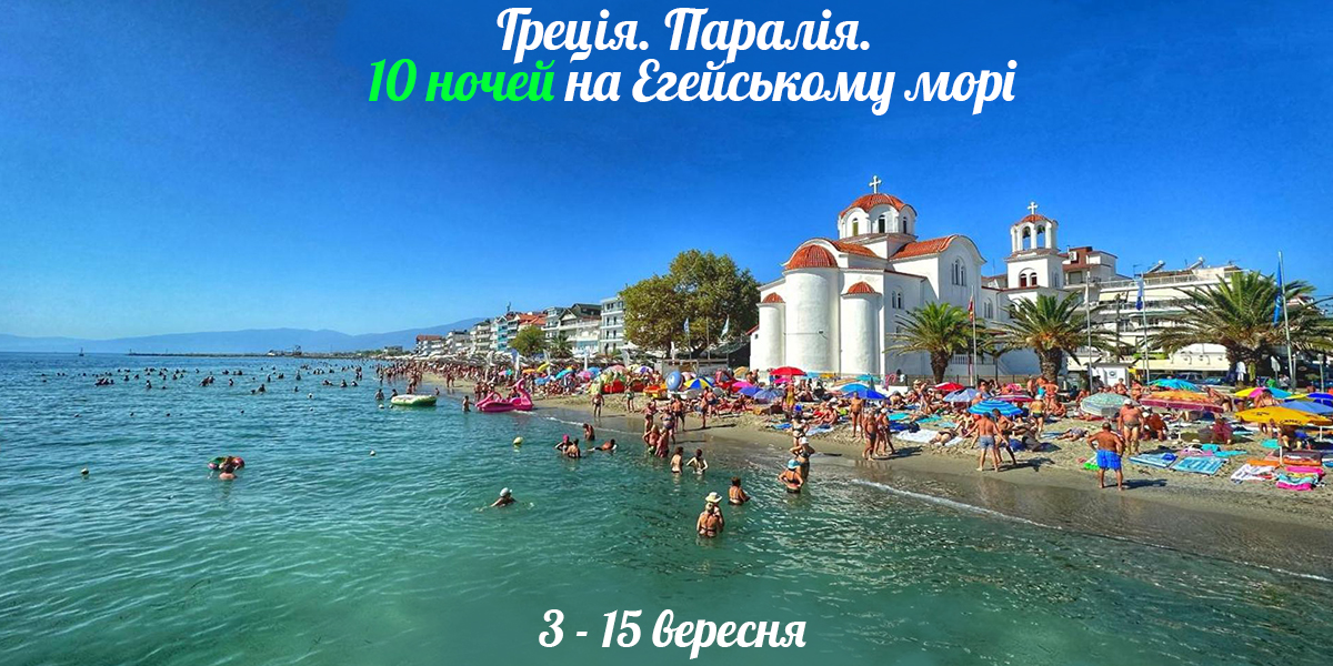 Відпочивати будемо у мальовничому курорті Паралія-Катеріні. Курорт дуже популярний серед туристів: має зручне розташування, теплий та комфортний клімат, поєднує якісний сервіс за доступними цінами.