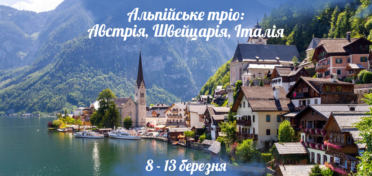 Запрошуємо Вас доєднатись до яскравої подорожі альпійським тріо: Австрії, Швейцарії та Італії! Разом з командою "Бомба-тур" ми відвідаємо швейцарське місто Цюрих, побачимо на власні очі Рейнський водоспад. Нас чекатиме дивовижний Зальцбург та Гальштат, доторкнемося до італійської моди в Мілані та відвідаємо містечко з однойменною назвою озера - Комо. Поринемо в романтичну атмосферу Верони та зачароване місто музики та мистецтва - вишуканий Відень.