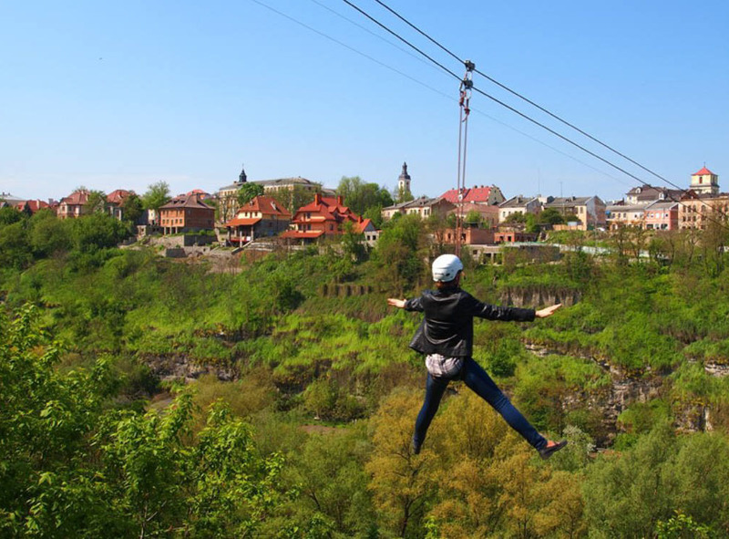Активно провести час у Кам'янці-Подільському можна також в альпінпарку, чи здійснивши стрибок з найвищого мосту України (висота мосту «Стрімка лань» становить 54 метри). Або ж покататись на троллеї, довжиною 184 метри, який переправить Вас до історичної частини міста за лічені секунди! Надійне спорядження та подвійна страхова система дозволяють безпечно милуватися видами природного каньйону!