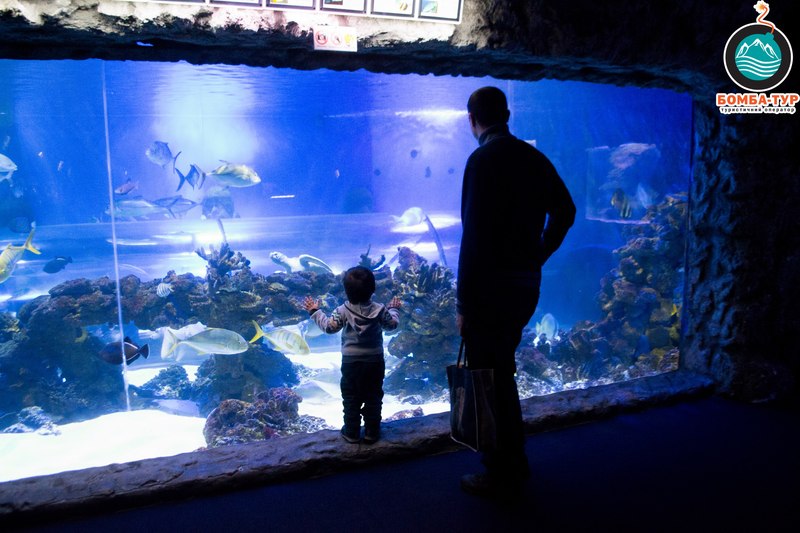 Основна родзинка великої експозиції морських акваріумів - підводний тунель, усередині якого кожен бажаючий може поспостерігати за життям мешканців морських глибин і відчути емоції, що раніше були доступні виключно дайверам. Тунель, споруджений з акрилового скла товщиною 8 см, розташовується на глибині 2 м під водою і з'єднує дві зали.