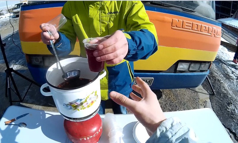 Під час обідньої перерви у нас буде можливість погрітись в автобусі та пообідати, адже вибір закладів харчування у ГК "Буковель" величезний, але й ціни також досить високі. А також випити келішок фірмового глінтвейну від "Бомба - Тур", чаю чи кави.