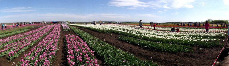 Якщо стати у куточку, аби охопити всю панораму, поле нагадує величезну різнокольорову зебру. Тюльпани ростуть за кольорами вузькими смужками вздовж поля. Поміж цих смужок залишили невеликі доріжки для туристів.